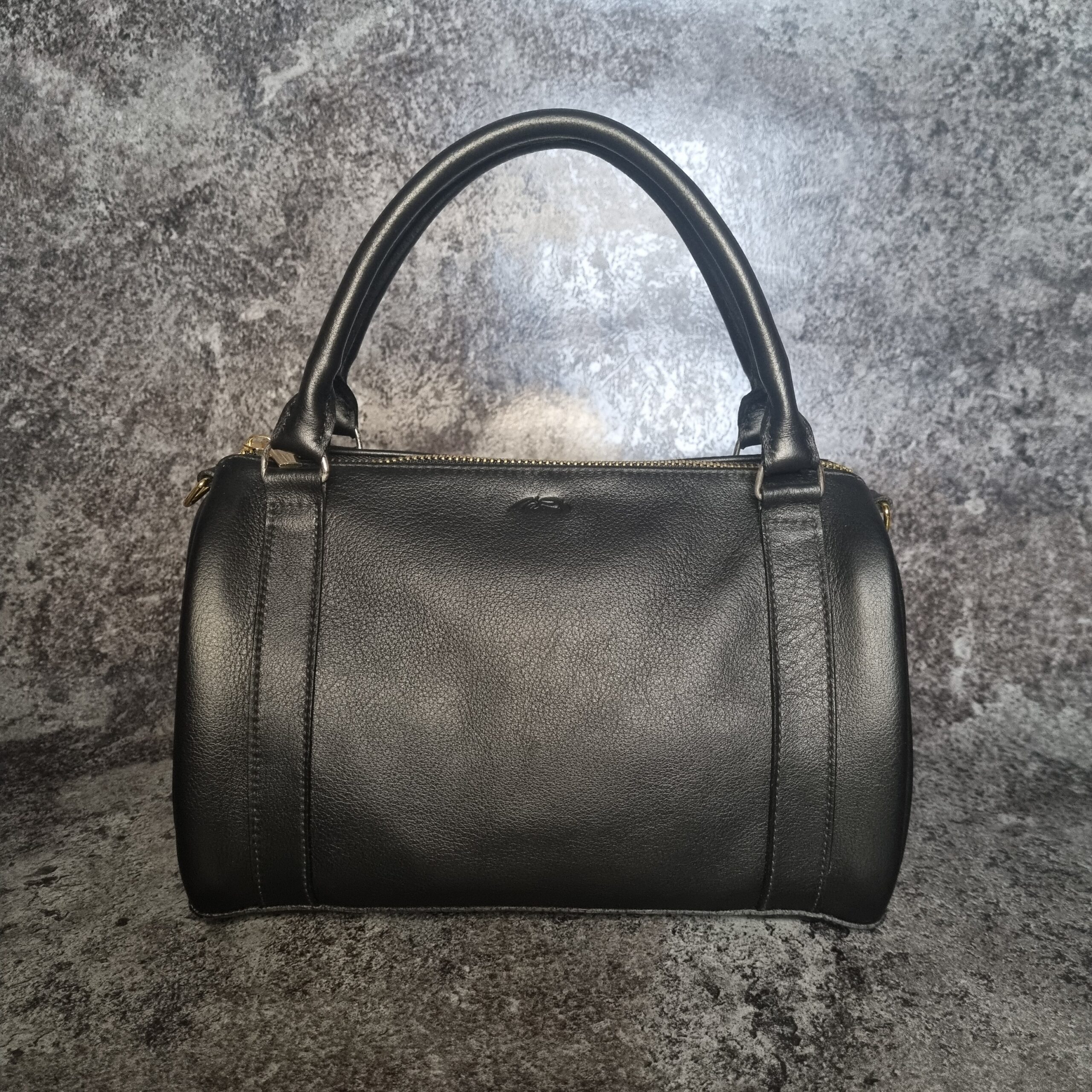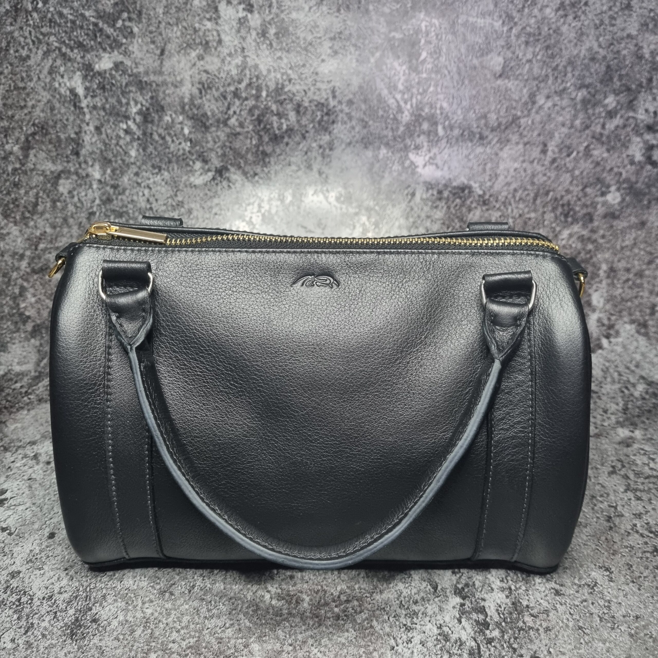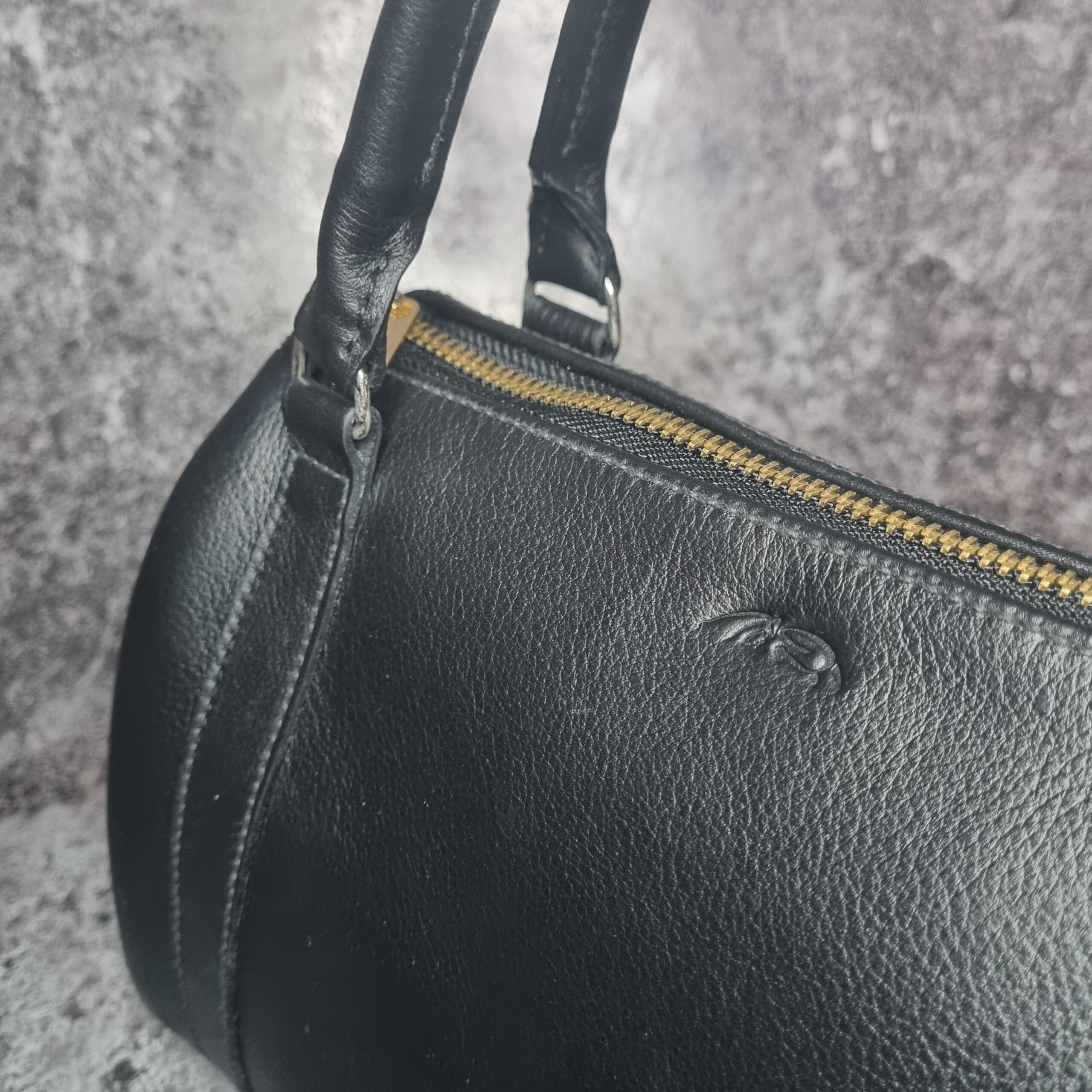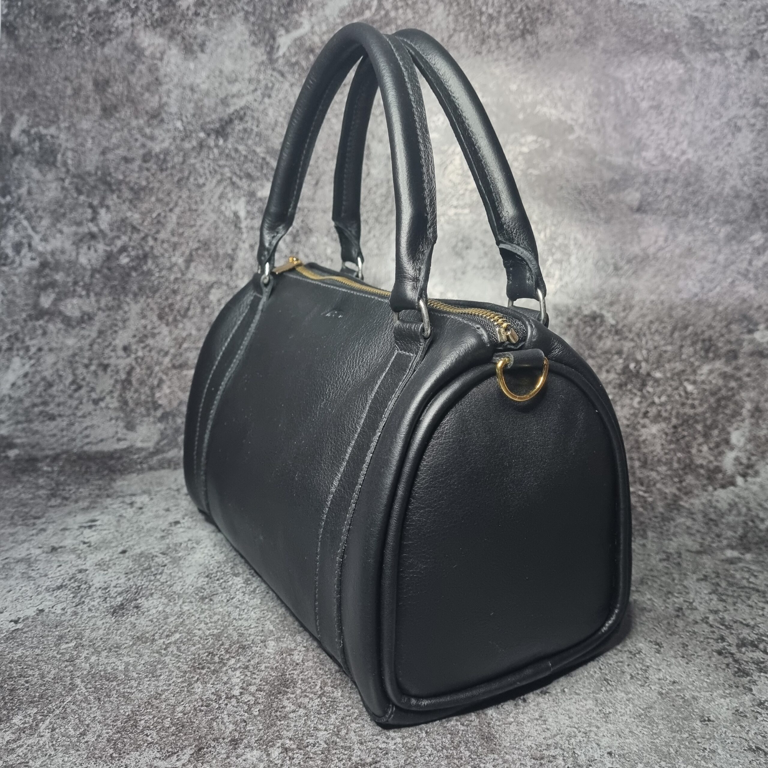Sac en cuir de veaux noir, bijouterie dorée et argent lisse, intérieur en coton imprimé fleuris sur fond noir , grande espace intérieure, système d’ouverture zip